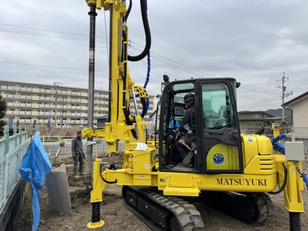 今回は、新しく導入した施工機を使って地盤改良工事を行いました。操作性や安定性が向上し、よりスムーズで精度の高い施工が可能に✨